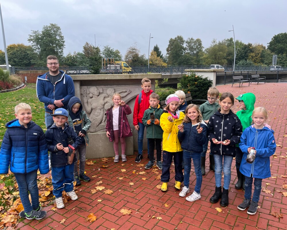 Zusammen mit der Jugendarbeit der Stadt Haselünne hat die KlimaWerkStadt in den Herbstferien eine Ferienpassaktion veranstaltet. Insgesamt haben zwölf Kinder an der Aktion teilgenommen und gemeinsam in der KlimaWerkStadt Vogelfutterglocken gebastelt. Beim Bemalen der Tontöpfe konnten die Kinder ihrer Kreativität freien Lauf lassen. Nachdem die Tontöpfe befüllt und bemalt wurden, mussten diese erstmal trocknen. Diese Zwangspause wurde genutzt, um dafür zu sorgen, dass das Stadtgebiet im nächsten Jahr noch schöner erstrahlt. Hierfür wurden Blumenzwiebeln gepflanzt. Diese sorgen nicht nur für mehr Farbe im Stadtgebiet, sondern bieten gleichzeitig auch Nahrung für Bienen und Insekten. Mitbegleitet wurde die Aktion von Ingo Schmit in seiner Funktion als Fachkraft für Jugendarbeit der Stadt Haselünne.