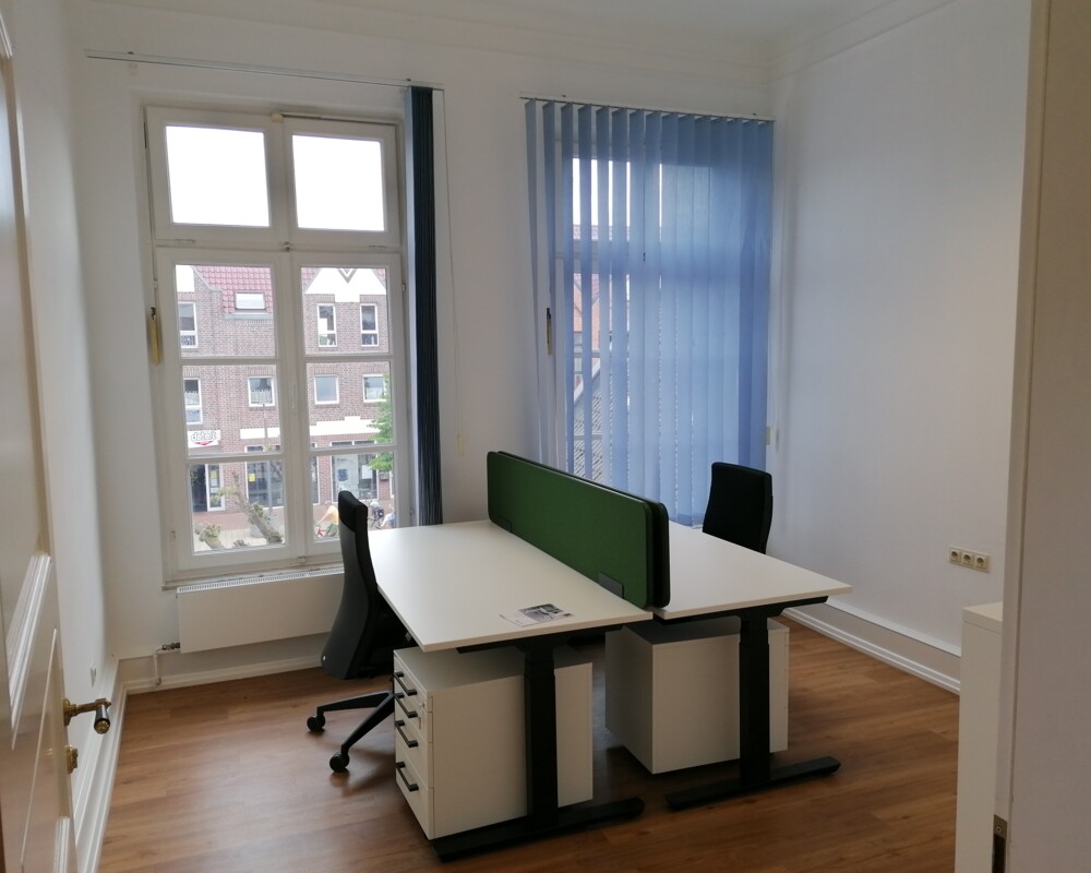 Im Obergeschoss des frisch sanierten Gebäudes der KlimaWerkStadt am Markt in Haselünne stehen Büroflächen für Interessenten der "neuen" Arbeitsform "CoWorking" zur Verfügung. Bei einem Coworking-Space handelt es sich um einen Ort, an dem Menschen zusammenkommen, um gemeinsam, aber nicht unbedingt miteinander, zu arbeiten. Die einzelnen Arbeitsplätze können je nach Wunsch für einzelne Tage oder Wochen angemietet werden. Eine längerfristige Anmietung ist ebenfalls möglich. Ausgestattet sind die Büroflächen mit stufenlos verstellbaren Schreibtischen und ergonomischen Bürostühlen.